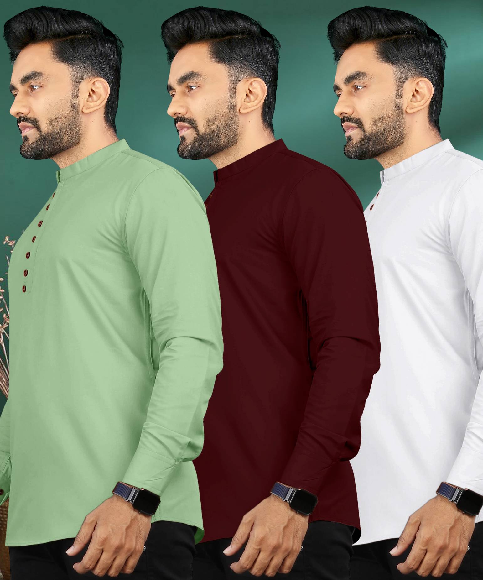 ISHQY Pack of 3 Men Solid Pure Cotton A-line Kurta (Multicolor)