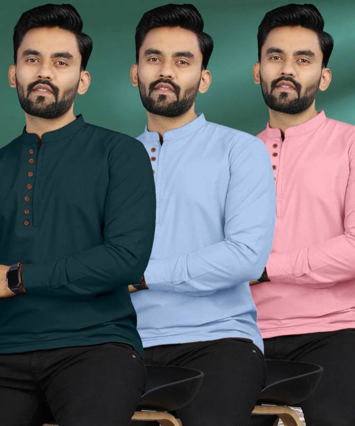 Pack of 3 Men Solid Pure Cotton A-line Kurta (Multicolor)
