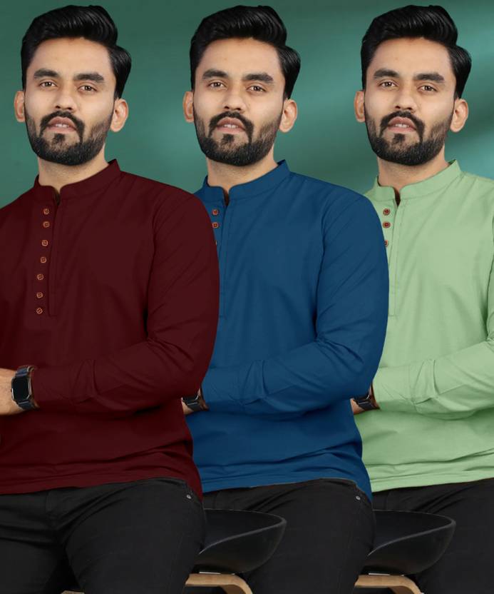 ISHQY Pack of 3 Men Solid Pure Cotton A-line Kurta (Multicolor)