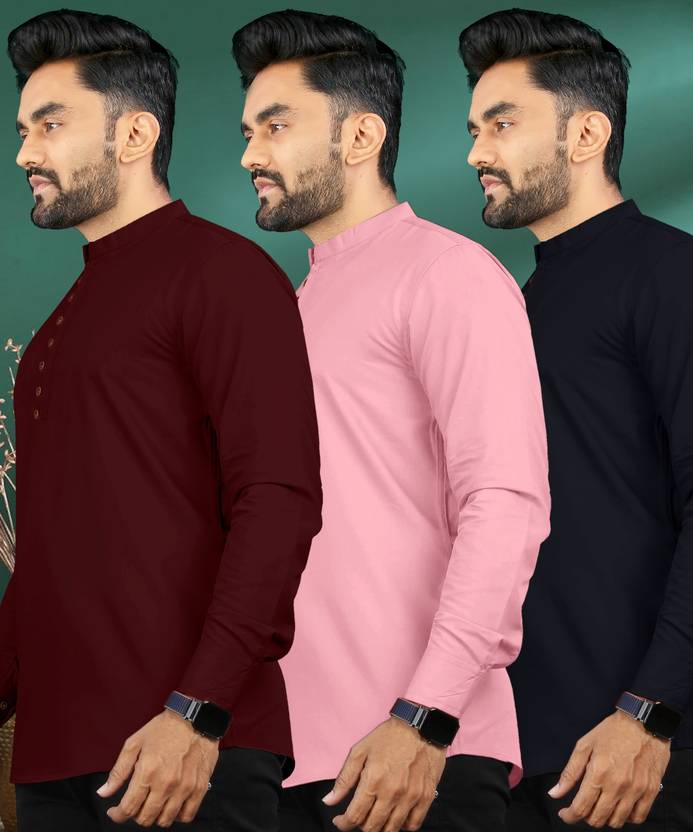 ISHQY Pack of 3 Men Solid Pure Cotton Straight Kurta (Multicolor)