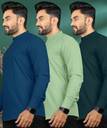 ISHQY Pack of 3 Men Solid Pure Cotton Straight Kurta (Multicolor)