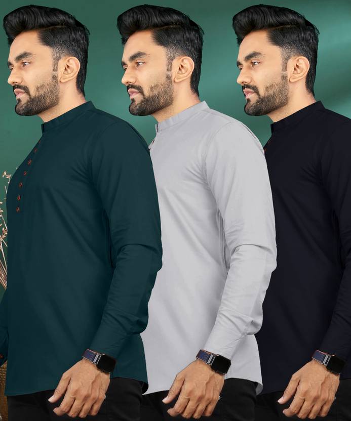 ISHQY Pack of 3 Men Solid Pure Cotton Straight Kurta (Multicolor)