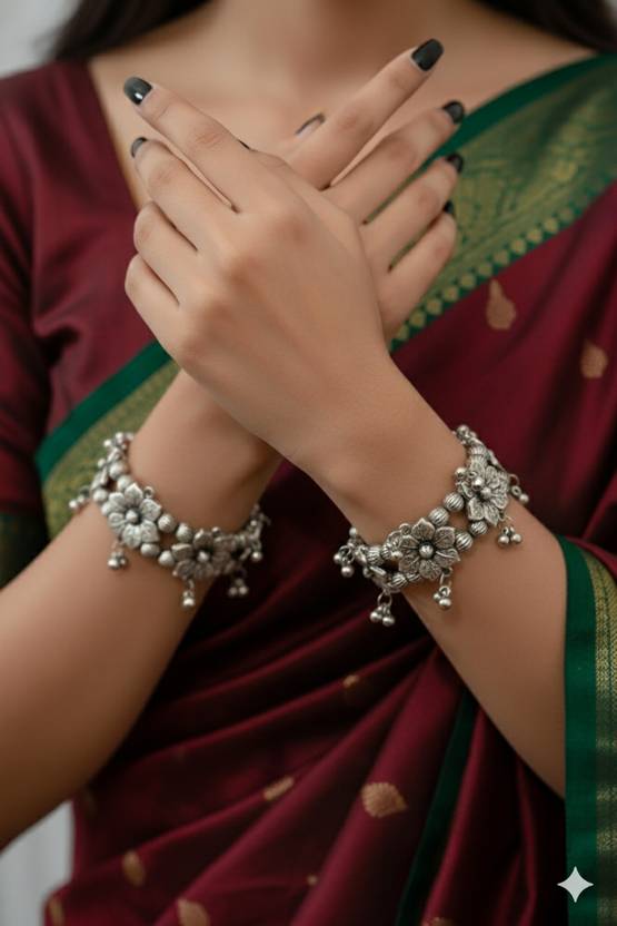 If you are Looking for oxidised bangles for women that are classy, elegant, and stylish? so These Oxidised bangle are the perfect accessory for you. This Designer Stylish Bangle will Enhance The Beauty of your hands. These fashionable stylish boho afghani traditional antique bangles oxidised have been oxidised to beautiful silver and made from fine quality hand picked material for oxidised bangles set durability and long-lasting shine. Lightweight and durable bracelate, which won't burden your hands. This cuff bracelet gives you a trendy & stylish look which will go with your modern and traditional attire. wear it with your outfit, or as a part of your outfit, to Festivals, Parties, Weddings, Engagements, and also Daily and on other occasions., are perfect for any office wear. The color complements all outfits & may be worn as a statement piece to any occasion combine it with matching dress and be the limelight of every Occasion Formal, Casual and Party Wear. Beautiful Looks at One Glance- with Intricate High Polish creates Glamorous Reflections and adds Luxurious Looks This Kade for women Will Be Head Turner.