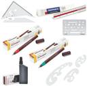 Isomars Architect Student Kit Contains 1.Art # Art # ADS2M10 - Adjustable Set Square - 10" 25cm/10" *Professional Quality *Clear Acrylic, Bevel/Straight Edge *White Acrylic Marking *Thickness : 2.8mm 2.Art # T4 - Triangular Scale No.4 *White Plastic with Precision Divisions *Size : 300mm (30cm / 12inch) 3.Art # TP02_0.2 / TP02_0.5 Technical Drawing Pen - 0.2 / 0.5 These Technical pens are also available in various point sizes 0.1, 0.3, 0.4, 0.5, 0.6, 0.7, 0.8, 1.10, 1.20, 1.40. 4.Art # ES23 - Erasing Shield *Stainless Steel *Size: 93mm X 60mm 5.Art # NK100 - BLACK Water Proof Drawing Ink. Specially formulated , pigmented ink for technical drawing pens. Suitable for all technical drawing pens. 6.Art # FCC3 - French Curve Set of 3 Clear Plastic with Inking Edge Sizes: 317 X 90 X 2.5mm 170 X 81 X 2.5mm 134 X 70 X 2.5mm