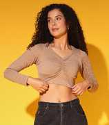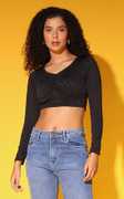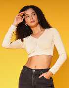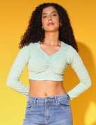 Sweetheart Neck Long Sleeve Breathable Slim Fit Crop Top