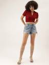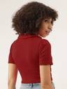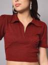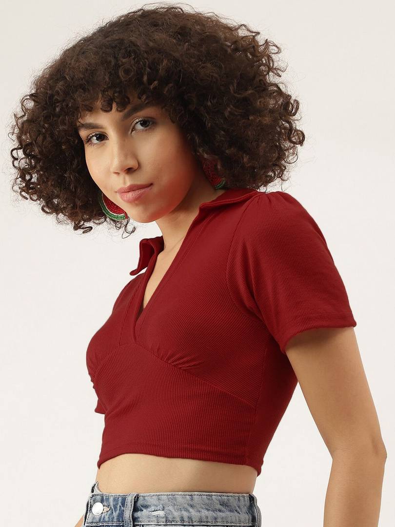 Fabric :Rib Knit, Pattern: Solid Sleeve: Short Slevees, Neck: V Neck Fit Type: Slim Fit, Closure: Pull On Details: Crop Top, Ribbed, Solid, Puff Sleeves, Collared STYLE: Trendy ribbed crop top featuring a sophisticated V-neck collar design and short sleeves for a chic, contemporary look FIT: Slim-fit silhouette with a cropped length that sits above the waist, perfect for creating fashionable layered outfits