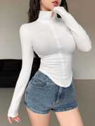 Details: Zipper, Sleeve Type: Regular, Sleeve Style: Casual, Hem Shaped: Asymmetrical, Color: White , Black, Maroon, Soft Pink, Peach, Red, Mustard, Beige, Sky Blue, Lavender, Pattern Type: Plain, Neckline: Collar, Sleeve Length: Long Sleeve, Length: Regular, Fit Type: Regular Fit, Fabric: Medium Stretch, Material: Knitted Fabric, Care Instructions: Machine wash or Hand Wash , Sheer: No