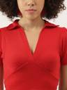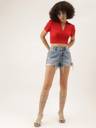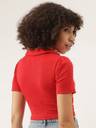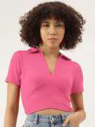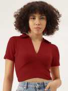 Fabric :Rib Knit, Pattern: Solid Sleeve: Short Slevees, Neck: V Neck Fit Type: Slim Fit, Closure: Pull On Details: Crop Top, Ribbed, Solid, Puff Sleeves, Collared STYLE: Trendy ribbed crop top featuring a sophisticated V-neck collar design and short sleeves for a chic, contemporary look FIT: Slim-fit silhouette with a cropped length that sits above the waist, perfect for creating fashionable layered outfits