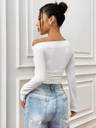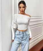 ISCA-345 Solid Asymmetric Collar Pleated Cropped Top