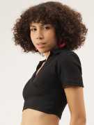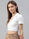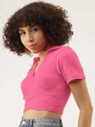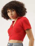 Fabric :Rib Knit, Pattern: Solid Sleeve: Short Slevees, Neck: V Neck Fit Type: Slim Fit, Closure: Pull On Details: Crop Top, Ribbed, Solid, Puff Sleeves, Collared STYLE: Trendy ribbed crop top featuring a sophisticated V-neck collar design and short sleeves for a chic, contemporary look FIT: Slim-fit silhouette with a cropped length that sits above the waist, perfect for creating fashionable layered outfits