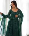 Step into elegance with this stunning Green Leriya Printed Anarkali Gown, crafted from premium georgette fabric for a soft and flowy drape. Featuring a round neckline and full sleeves, this gown offers a perfect blend of comfort and sophistication. The intricate Leriya print adds a traditional charm, making it an ideal outfit for festive occasions, weddings, and parties.