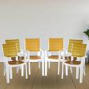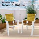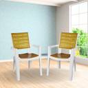 ITALICA Designer Series Comfortable Plastic Arm Chair/Double Insert Stackable Chair/ Plastic Outdoor Chair (White & Gold, Set of 2, Pre-assembled)
