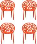 ITALICA Oxy Plastic Chair for Home/Glossy Finish Crystal Design Plastic Outdoor Chair/ Plastic Outdoor Chair (Orange, Set of 4, Pre-assembled)