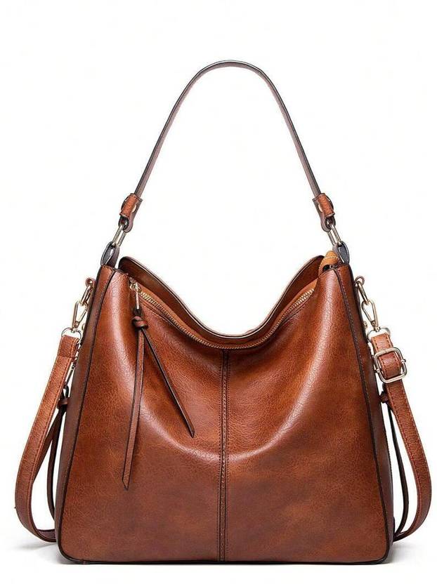 Stylish PU Leather Tote Bag Women Large Capacity Hobo Handbag Crossbody Option