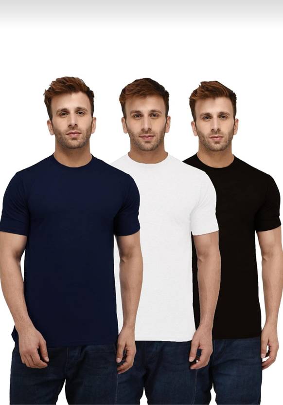Pack of 3 Men Solid Round Neck Polyester Multicolor T-Shirt