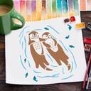 IVANA'S Otter Stencil 11.8x11.8inch Plastic Floating Sea Otter Stencil Two Otters Fish FIN-1595 Modern Art & Craft Stencil (Pack of 1, Floral, Abstract, Unique, Border Stencil)