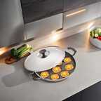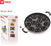 iVBOX Eco-Plus Non-Stick Appam Maker 12 Cavity Paddu Pan Paniyarakkal Patra Paniarakkal with Lid 1 L capacity 23 cm diameter (Aluminium, Non-stick)