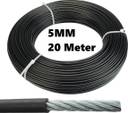ivee international Gym Machine Wire Rope PU Coated Cable Inside Steel (Black) (5 MM, 20 Meter) Climbing Pulley (Black)