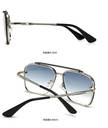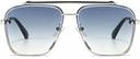 A metal gradient blue sunglass typically features sleek, polished metal frames with a smooth gradient effect on the lenses. The lenses transition from a deep blue at the top to a lighter shade towards the bottom, offering a stylish and modern look. The frames, often in silver, gold, or gunmetal, add a sophisticated contrast to the vibrant lenses. The temples are usually slim, adding a minimalistic aesthetic, while the nose pads are adjustable for comfort. These sunglasses are perfect for both fashion and functional sun protection, blending elegance with a contemporary edge.