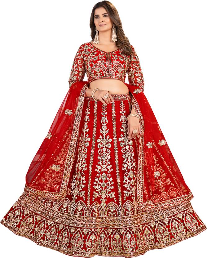 IYALAFAB Embroidered Semi Stitched Lehenga Choli (Red)