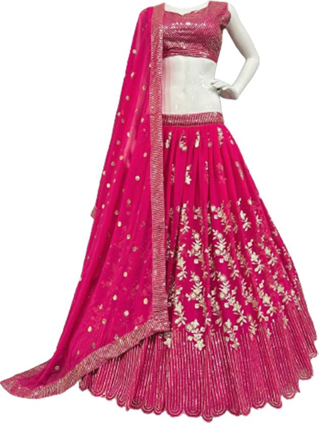 Lehenga Choli Detail Lehenga Fabric :- Faux Georgette Lehenga Flair :- 3 meter with canvas pata Choli Fabric:- : Faux Georgette Dupatta Fabric:- : Georgette Dupatta Length :- 2.20 Mtrs Lehenga Choli Inner:- Crep Lehenga Choli Work:- embroidery with 9mm Sequnce Lehenga Choli Stitching Type :- Lehenga Semi Stitched , Blouse Unstitched