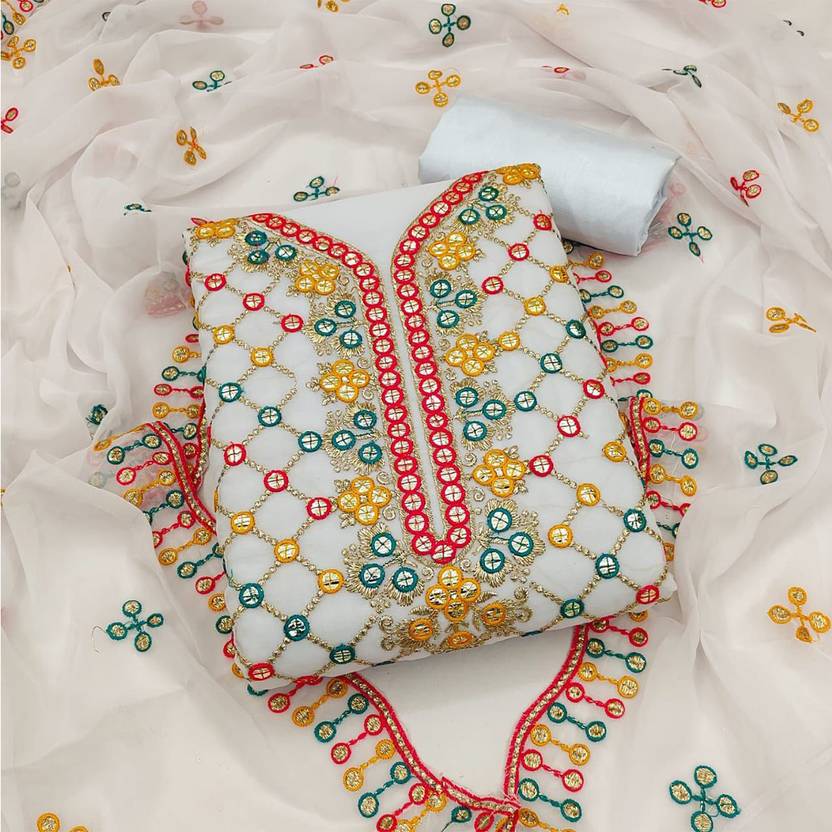 IYALAFABÂ Unstitched Georgette Salwar Suit Material Embroidered