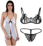 Style: Alluring see through women lingerie/bikini set. Super Hot & Sexy Women babydoll lingerie with panty. simple yet tasteful, sexy yet graceful.