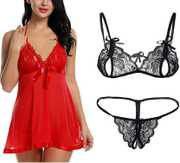 Women Sexy Babydoll and Lace Lingerie Bikini Set (Bra-Panty Set)