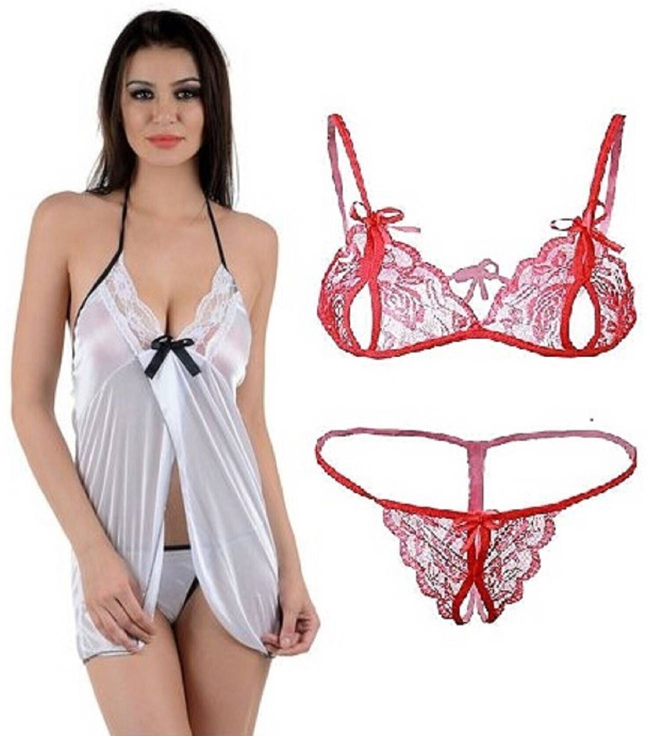Women Sexy Babydoll and Lace Lingerie Bikini Set (Bra-Panty Set)