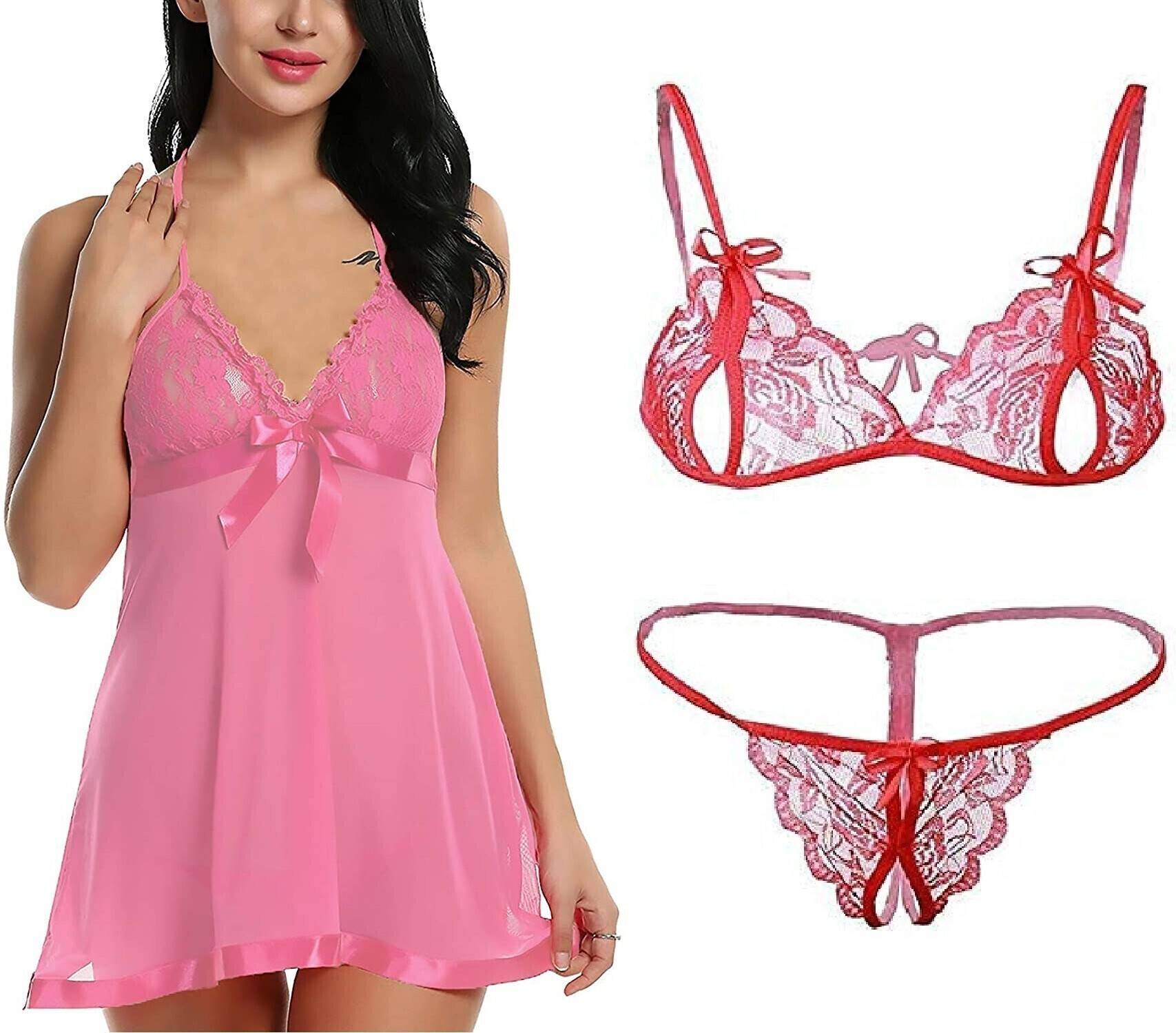 Women Sexy Babydoll and Lace Lingerie Bikini Set (Bra-Panty Set)