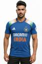 Men Printed Round Neck Polyester Light Blue T-Shirt