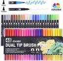 izone 48 dual tip marker pens watercolor brush pen tip 0.4 Marker set of 48,Fine and Brush Tip Colored Pens for Coloring,Art,Sketching,Bullet Journal,Coloring Book,Drawing (Set of 48, Multicolor)