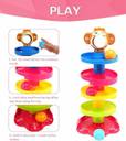 The ball drop toy features an engaging 5-layer design, each layer equipped with inclined surfaces that guide the balls from one hole to the next in a seamless cascade. This not only makes it visually stimulating but also encourages interactive play for toddlers. The ball dropping from the top and navigating down through various layers adds an element of excitement and curiosity.