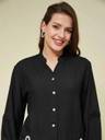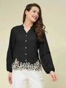 Elevate your everyday look with this stylish hip-length women's shirt featuring delicate Schiffli embroidery on the hem. Designed with a collar neck and front button closure, it offers a chic and graceful silhouette. The full sleeves with gathered cuffs add a trendy touch, while the soft, breathable fabric ensures all-day comfort. Perfect for casual outings, workwear, or semi-formal events, this shirt pairs effortlessly with trousers, jeans or skirts. Available in multiple vibrant and elegant colors and sizes from S to XXL, it’s a versatile addition to your wardrobe that brings together comfort, elegance, and timeless design.