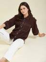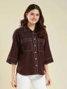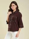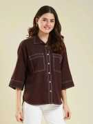 Upgrade your wardrobe with this elegant yet trendy brown crepe shirt! 👚 Made with soft, breathable fabric for all-day ease 🌬️, this shirt features ✨ two functional front pockets and stylish contrast stitching that adds a sharp, modern edge.