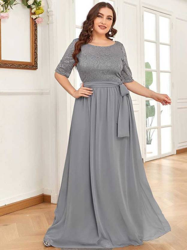 J4 FabĀ Women Fit and Flare Grey Maxi/Full Length Dress