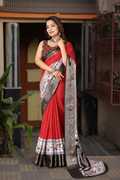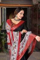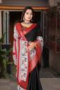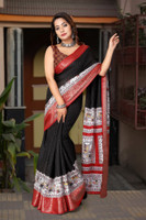 J6 Designers Self Design, Checkered, Printed Bollywood Cotton Silk Saree (Black, Red)