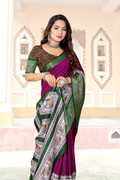 Crafted from a blend of cotton and silk, this saree can offer you a balance of comfort and elegance. The cotton provides a soft and breathable feel, while the silk adds a subtle sheen, which can make it suitable for various occasions. The lightweight fabric can offer ease of movement, keeping you comfortable even during long periods of wear.