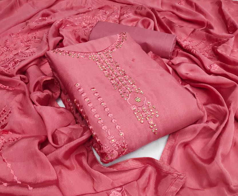 Unstitched Cotton Blend Salwar Suit Material Self Design