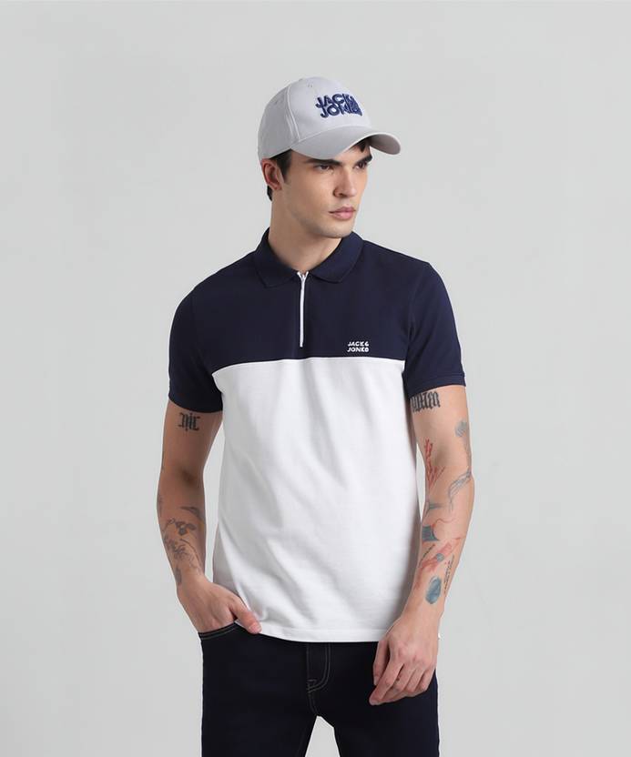 JACK & JONES Colorblock Men Polo Neck Blue T-Shirt