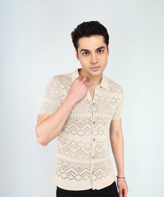 JACK & JONES Men Embroidered Casual Beige Shirt
