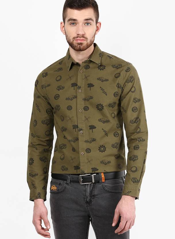 Men Slim Fit Printed Spread Collar Casual Shirt