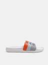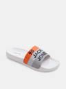 White logo print pool sliders for men. Made from premium quality materials for durability.