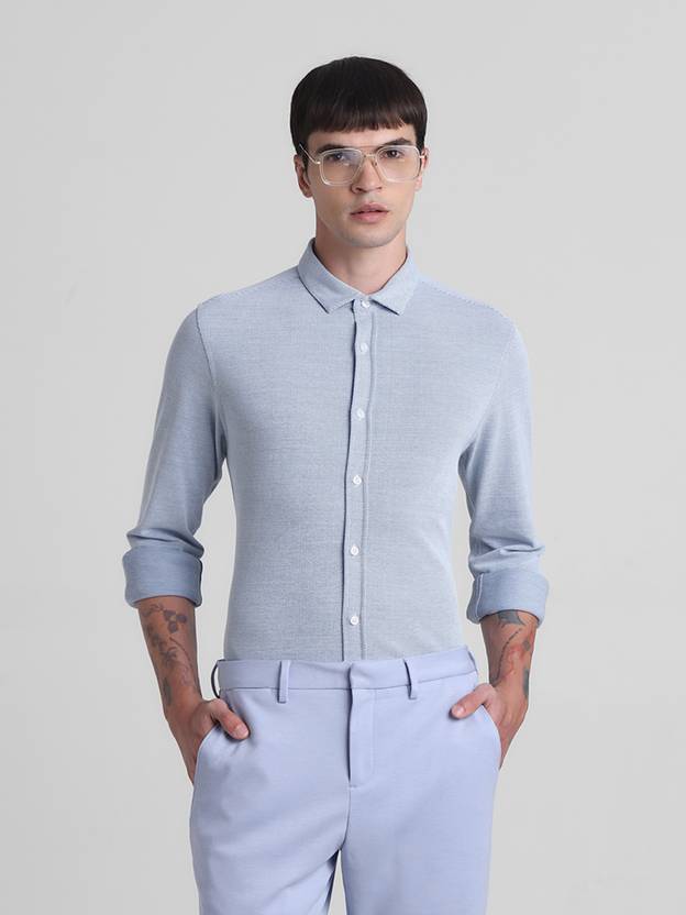 JACK & JONES Men Solid Casual Blue Shirt