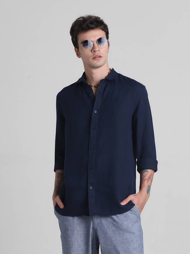 Men Slim Fit Solid Spread Collar Casual Shirt