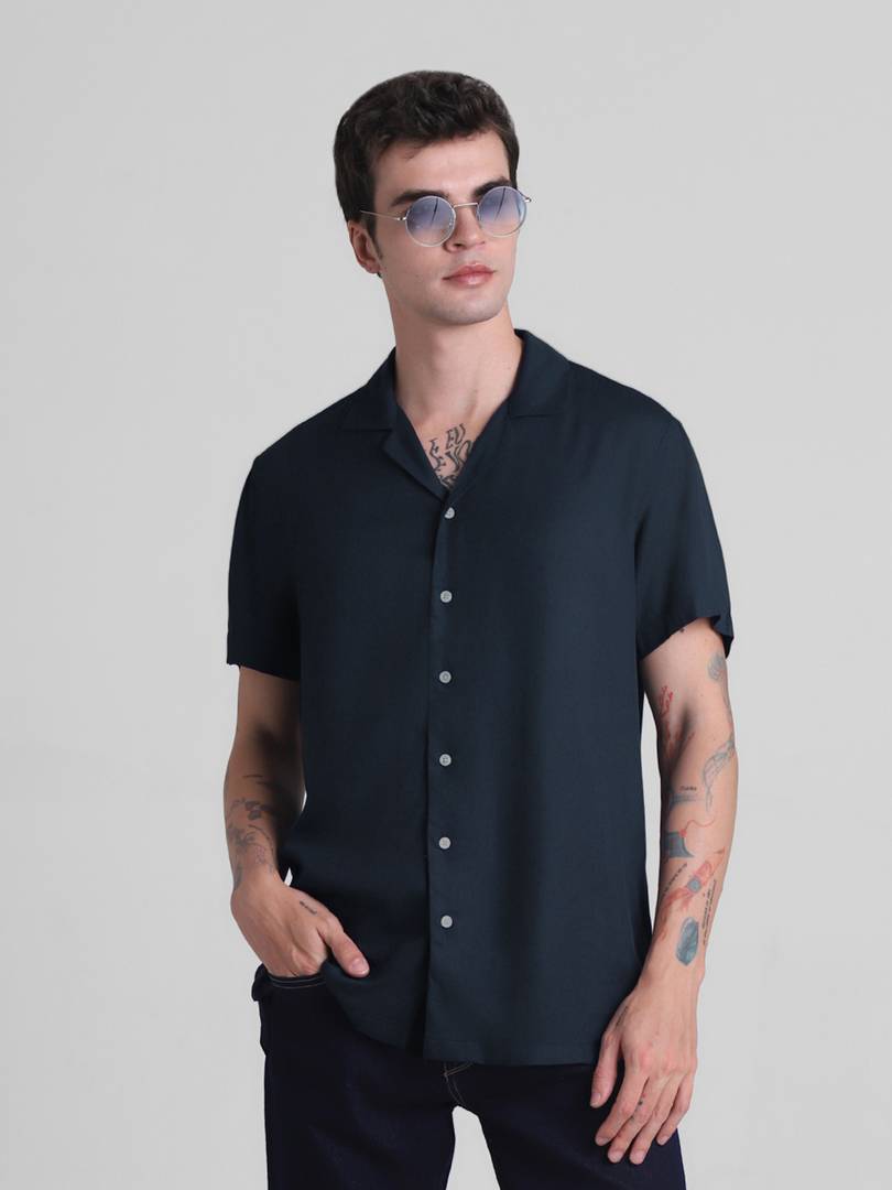 JACK & JONES Men Solid Casual Blue Shirt