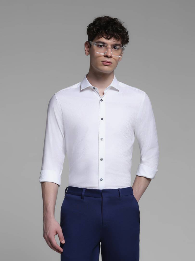 Men Slim Fit Solid Spread Collar Casual Shirt