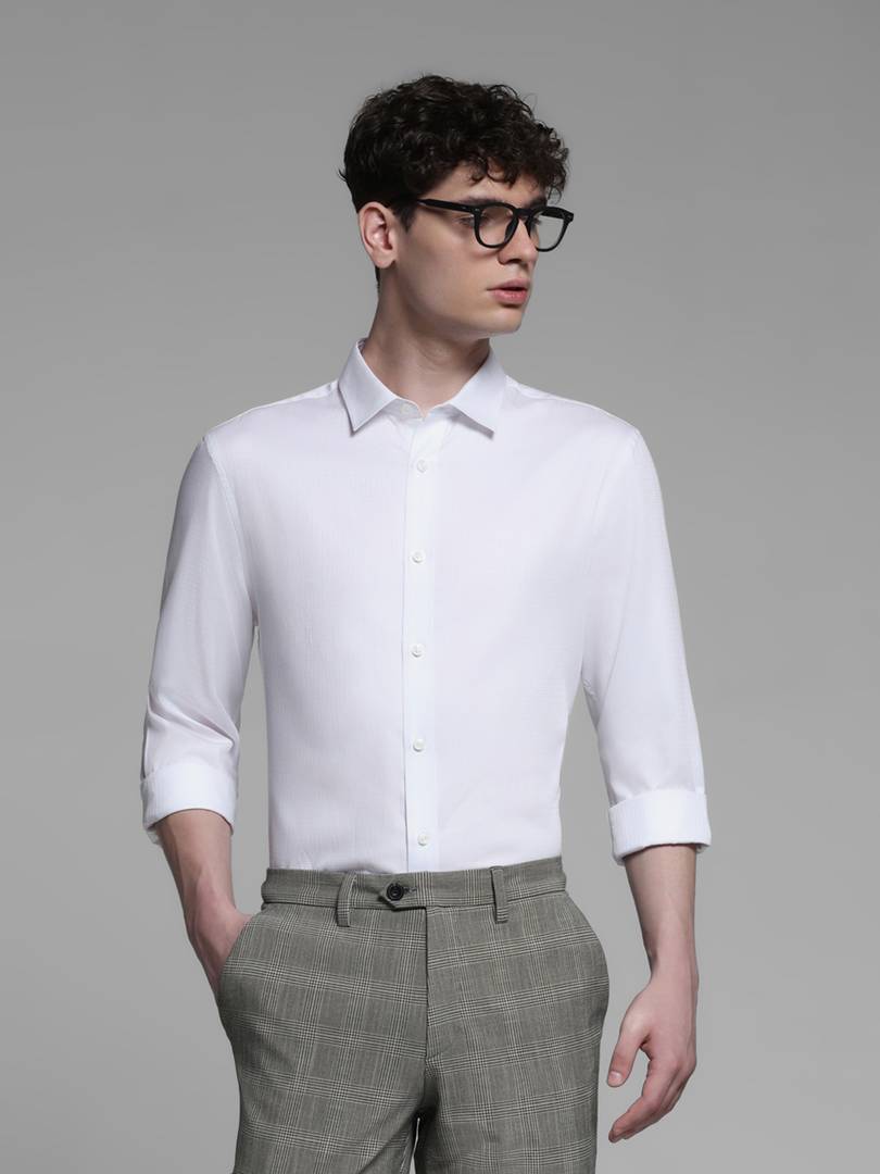 Men Slim Fit Solid Spread Collar Casual Shirt