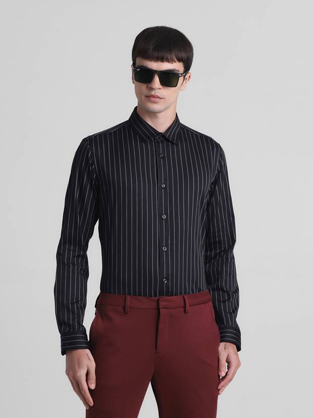 JACK & JONES Men Striped Formal Black, Grey Shirt