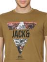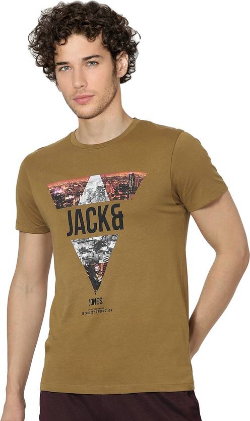 Men Printed Round Neck Cotton Blend Brown T-Shirt